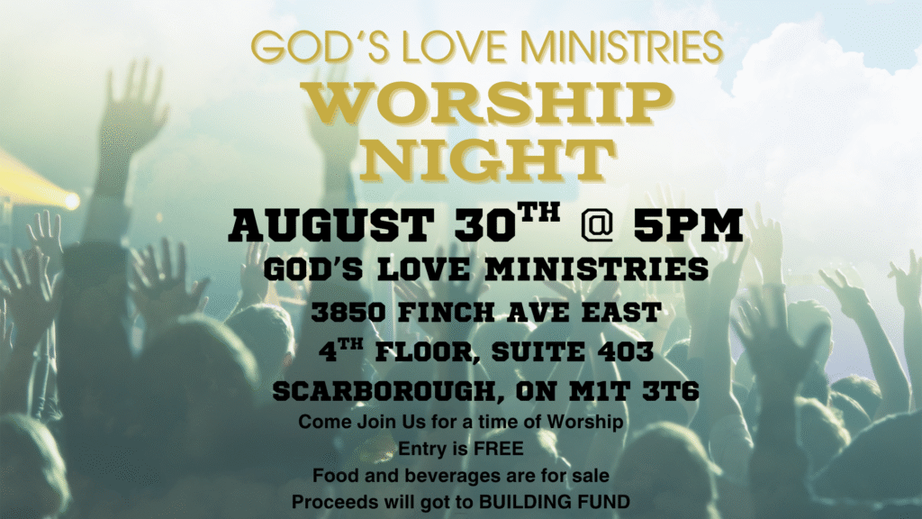 Welcome to a night of worship at God’s Love Ministries! Join us for an evening filled with praise, music, and community. Let’s come together to celebrate and experience the love of God through song and fellowship. This event will be held in person at God’s Love Ministries. We can’t wait to see you there! ENTRY IS FREE!!! Food and beverages will be for sale. All proceeds will go to building fund.